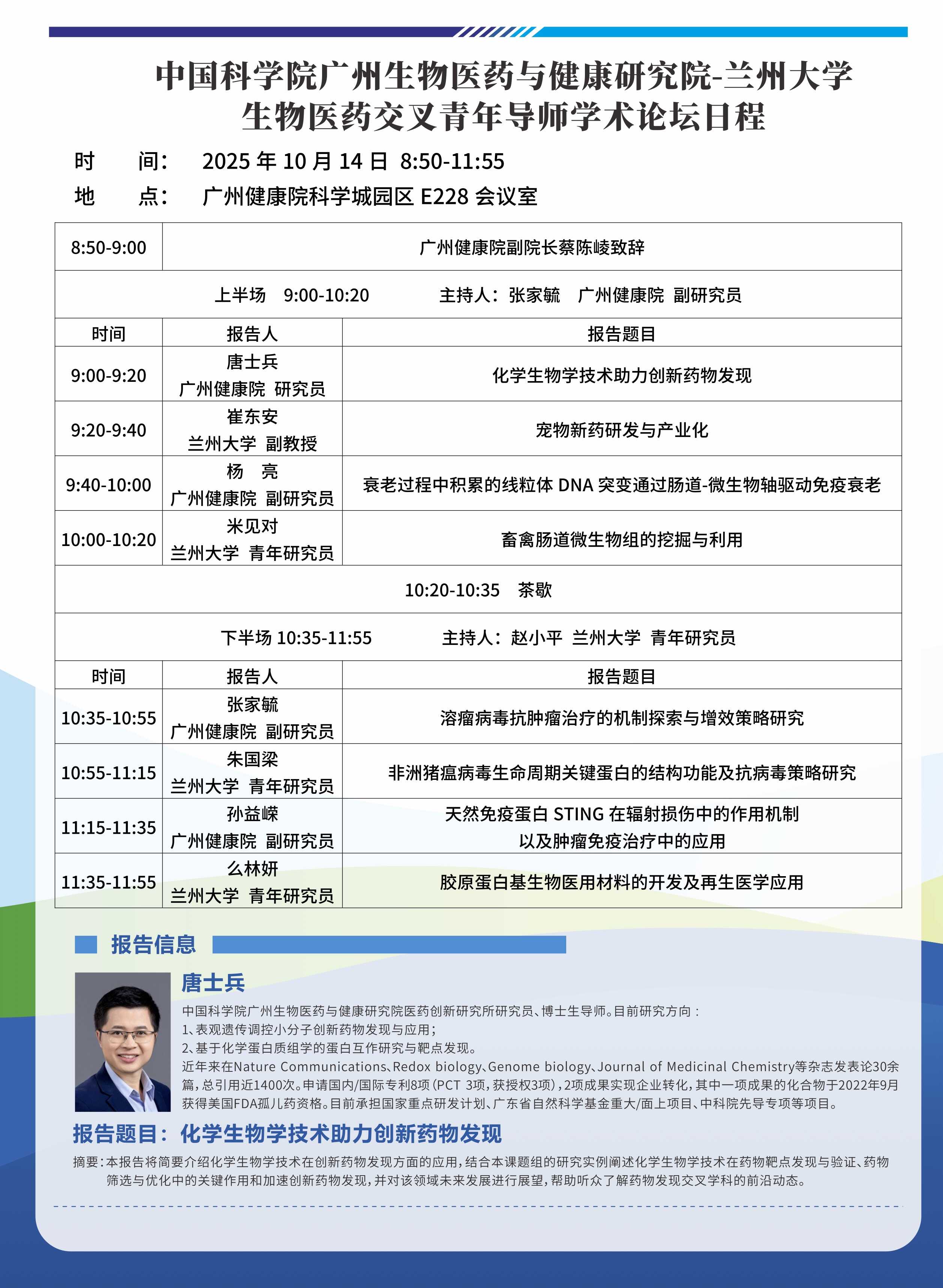 中國科學(xué)院廣州生物醫(yī)藥與健康研究院-蘭州大學(xué)生物醫(yī)藥交叉青年導(dǎo)師學(xué)術(shù)論壇