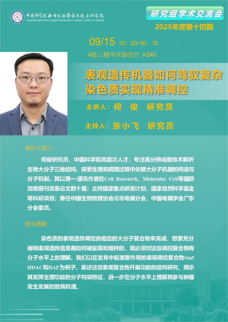 2025年9月15日研究組學(xué)術(shù)交流會(2025年度第十四期):表觀遺傳機(jī)器如何駕馭復(fù)雜染色質(zhì)實(shí)現(xiàn)精準(zhǔn)調(diào)控