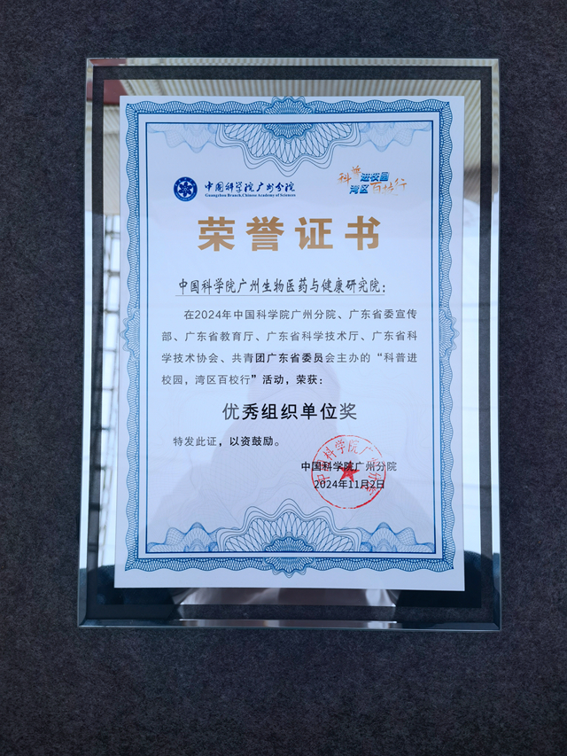 榮獲“中國科學院科普進校園灣區(qū)百校行”優(yōu)秀組織獎